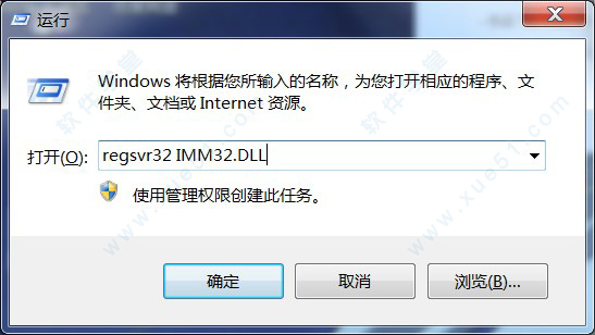 4、点击开始菜单-运行-输入内容“regsvr32 imm32.dll”后,回车之后就可以解决了