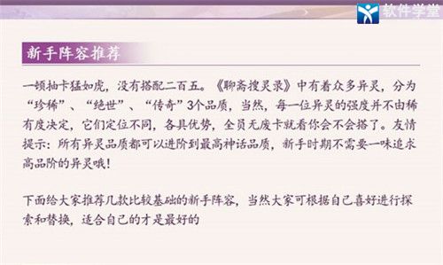 作为一个新人,在刚接触聊斋搜灵录的时候,由于对各个英雄都不熟悉,是很难清楚的知道该使用什么样的阵容搭配对战局会更好,如果搭配得不合理,与自己的实力不相匹配的话,可能还会造成相反的结果,所以下面小编给新手朋友们带来聊斋搜灵录新手阵容推荐,有需要的朋友可以来看看哦。