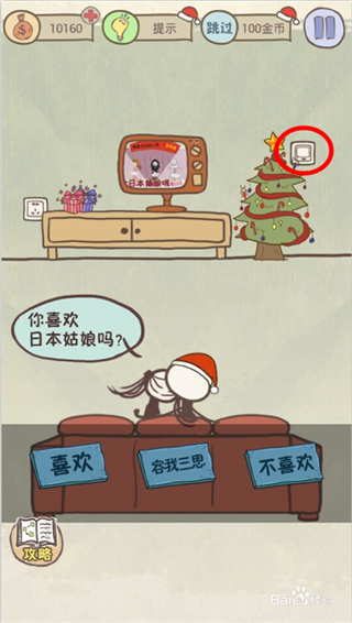 1.游戏中只需要从左向右对着圣诞树底盘滑动2次,即可看到隐藏在圣诞树背后的礼物盒。