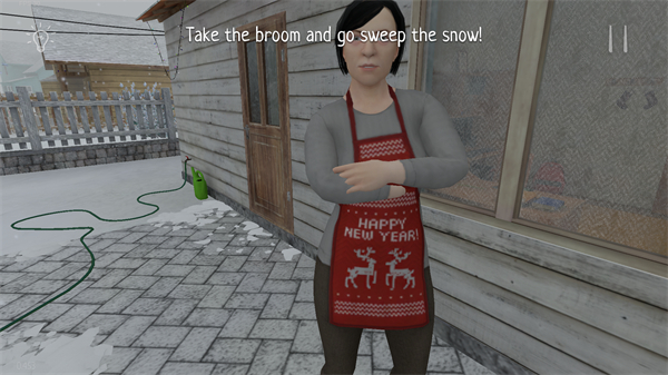4、不出所料,我们被妈妈逮住了,被要求拿着扫帚去扫雪~接下来怎么成功闯关就看你的啦!