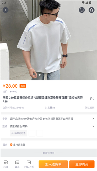 3、在详情页面中,查看完信息之后觉得不错可以直接进行购买,或是加入进货单稍后购买