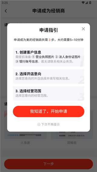 4、成为经销商需要创建客户信息,选择开店意向和选择经营范围,根据步骤完成申请即可
