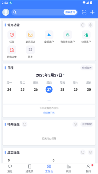 客户无忧app还加入了即时通讯功能,你可以直接在这里与公司进行对话,确保可以及时获得有效信息,而且加入了统计版块,你可以在这里查看自己的简报,业绩目标,排行榜等信息,还可以查看产品效率,目标完成率等,让你可以更好的掌握客户关系。